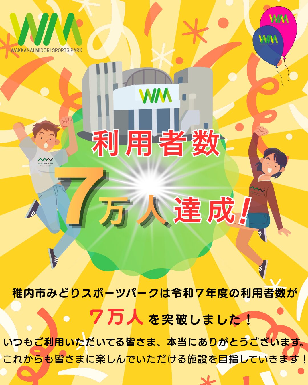令和7年度の利用者数が「7万人」を突破いたしました。日頃よりご利用いただいている皆さまのおかげです。本当にありがとうございます。